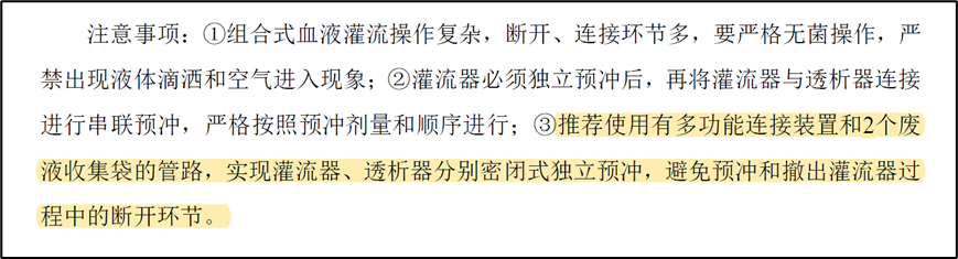 目前血液透析與血液灌流(HD+HP)聯(lián)合治療時,連接透析器和血液灌流器的管路有兩種,分別是短連接管和密閉式血液灌流管路。其中密閉式血液灌流管路更加符合臨床感控的需求,可實現(xiàn)全過程密閉式操作,避免管路接口暴露,液體滴灑或者空氣進入的風(fēng)險。因此, 2021年版《血液凈化標(biāo)準操作規(guī)程》推薦使用密閉式血液灌流管路。