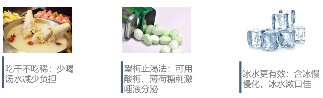 ③含一小片檸檬或嚼一小塊口香糖可以促進唾液產生也有助于緩解口渴。
