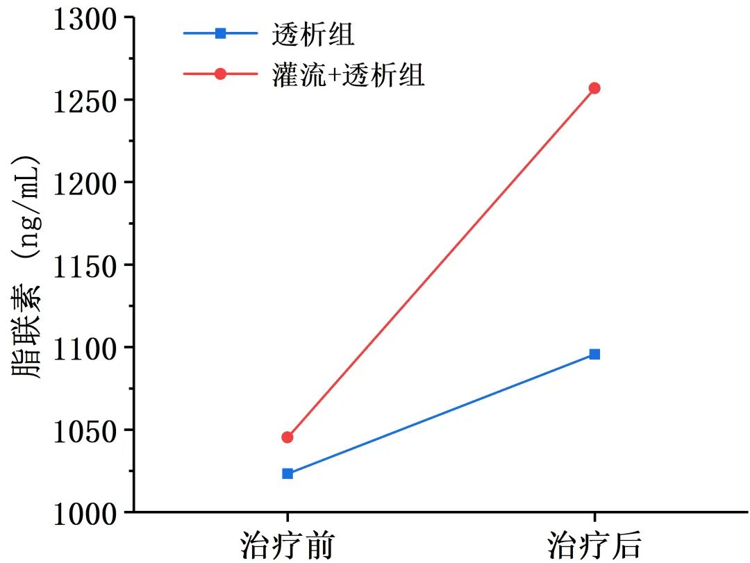 圖4 治療前后患者脂聯素水平變化